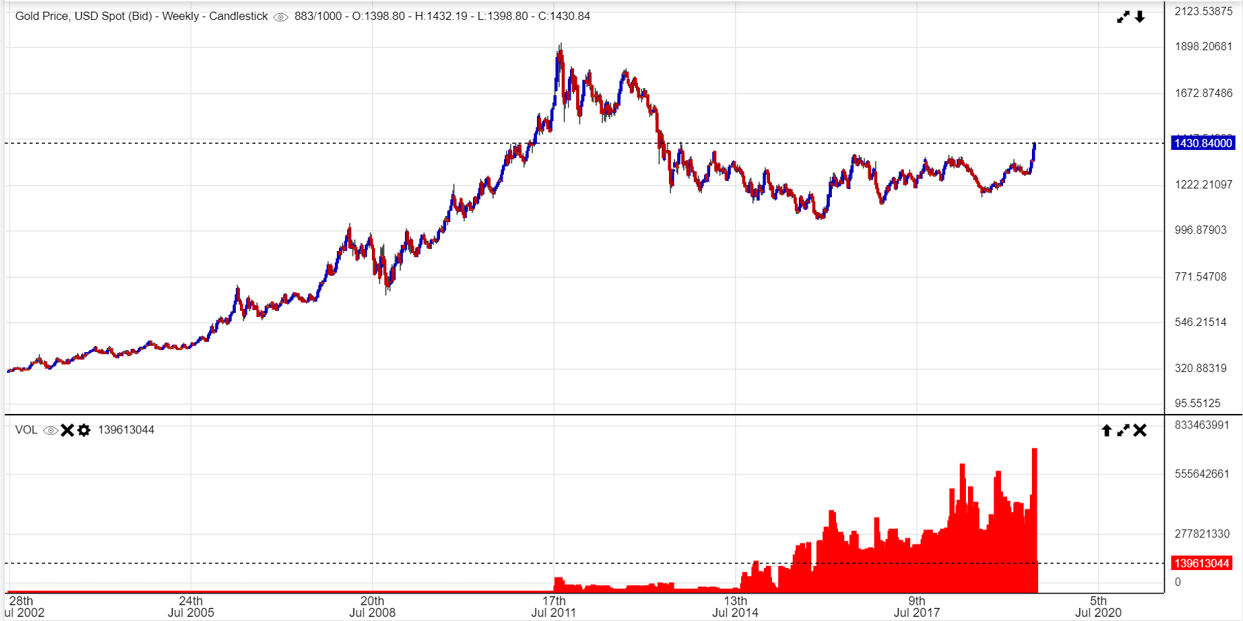 GOLD WEEKLY: To break from a big base & over resistance, you need a surge of STRONG VOLUME to push higher. WE DEFINITELY HAVE THAT NOW.