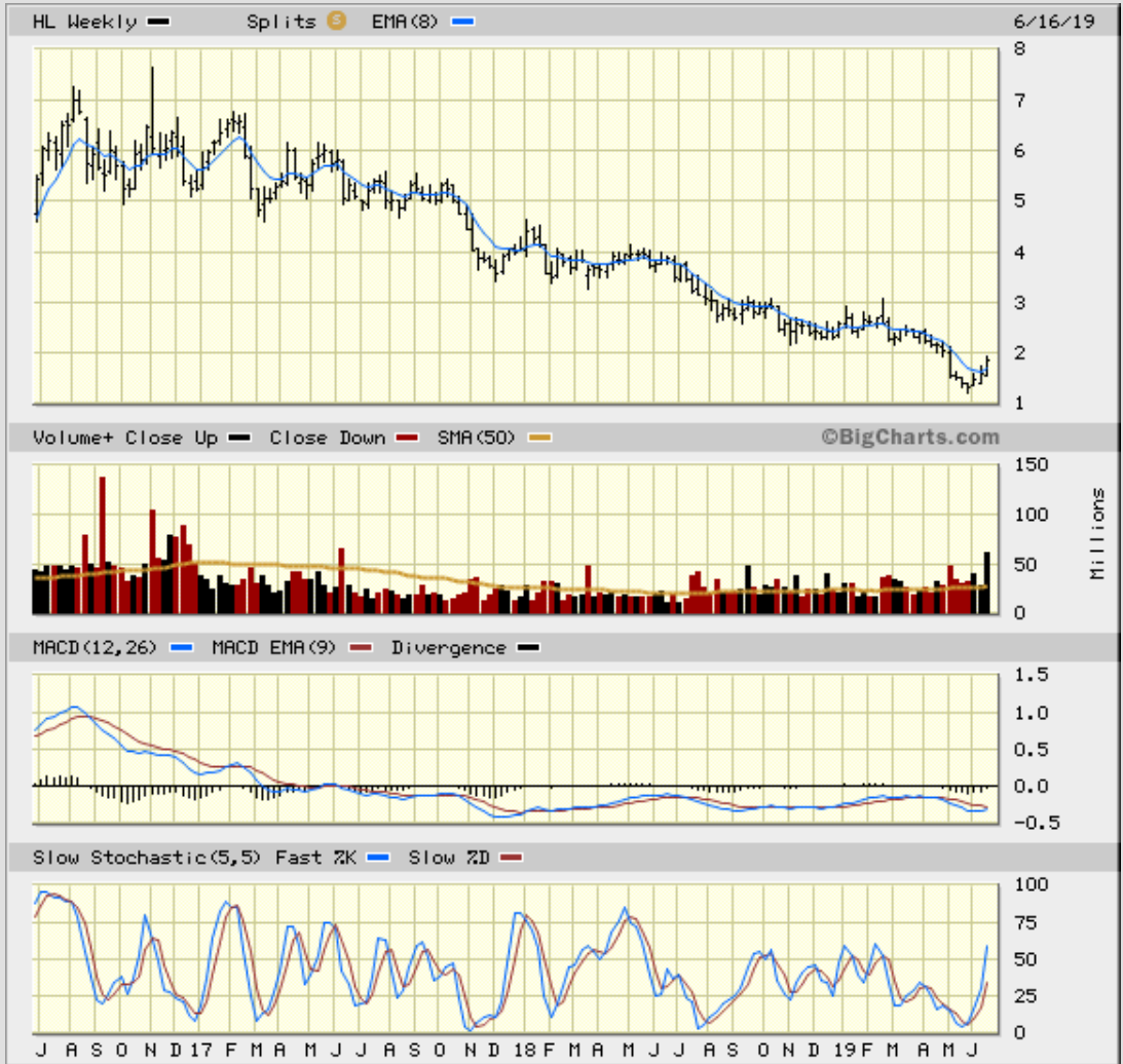 HL WEEKLY – And HL is still very close to the lows, volume is increasing, and the potential is good.