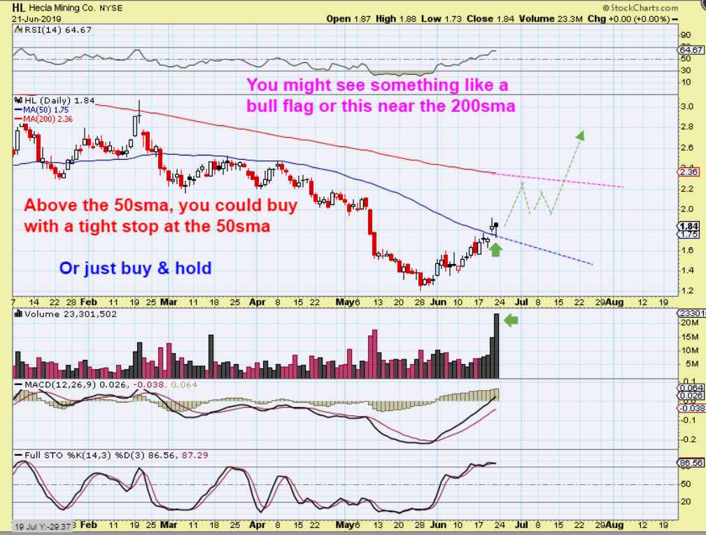 HL – I liked HL as a bit of a LAGGAR still near the lows. It got above the 50sma when I drew this…