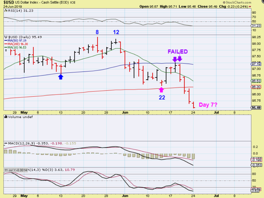 USD – The USD broke below the 200sma and continued lower. Gold continued higher. If that is a dcl on day 22 and this is only day 7 , The USD can drop much further over time. Day 7 or day 29? Let’s look again at the bigger picture…