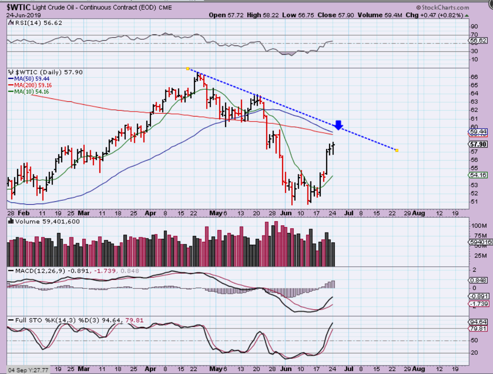 WTIC – Oil continued higher, and is heading for strong resistance. There has been a change in the relationship between Iran & the US, and it is affecting the Oil Route & gave us an early daily cycle low. For now, Oil should reach the $60 area , and will need to be re-examined.