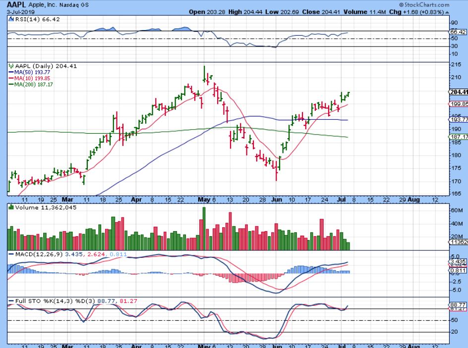 AAPL – yes, I do see this as a bullish set up, above the 50 sma. AAPL is up 10% from the lows 1 month ago. I’ve seen AAPL, GOOG, BIDU, etc double in a year …