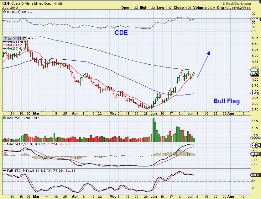 CDE – CDE is up over 60% from the lows in 1 month. I’ve been posting CDE as a Silver stock that is not extended, yet it is acting correctly. This looks like a Bull Flag. You could Buy the break out or add anywhere here if you can take a little choppiness.