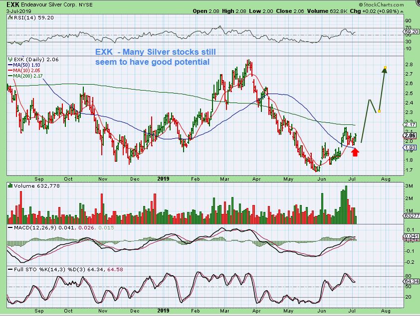 EXK – EXK is another Silver stock that is not extended at all, but it is acting correctly. It may be waiting for Silver to run, but it is a low risk buy at the 50sma.