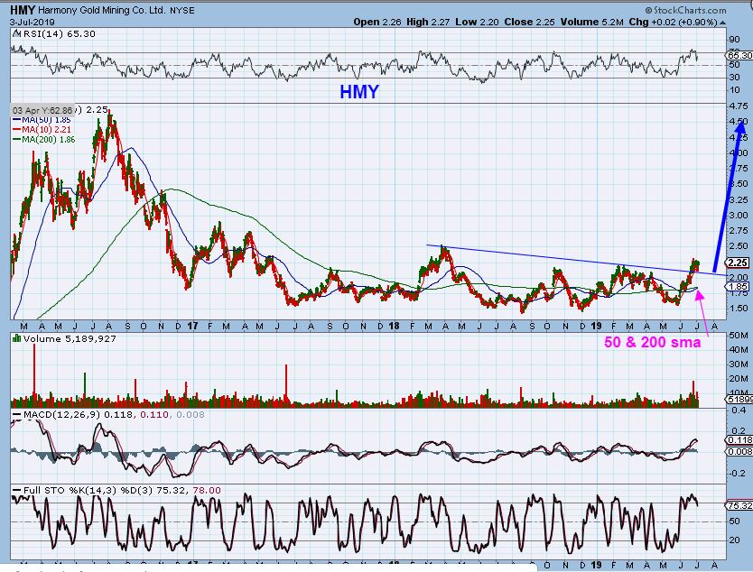 HMY – HMY is up almost 50% off of the Fed Minute Lows, but I still view this as a Buy or place to add for long term buyers, because …
