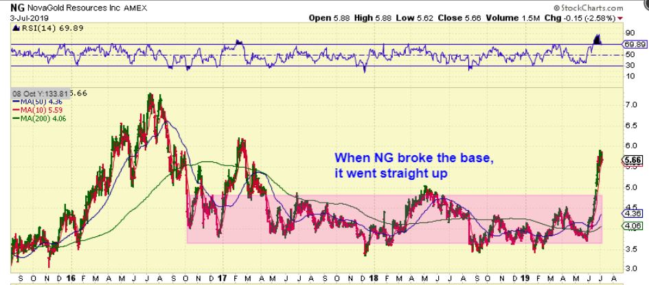 NG broke from its multiyear base, and it has rallied strongly, straight up. DRD did the same.
