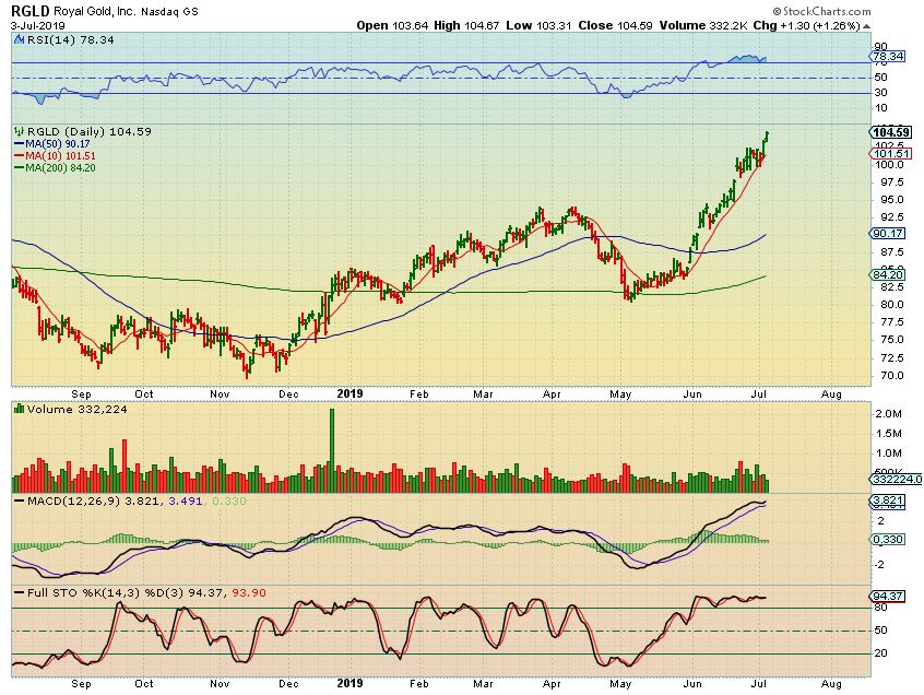 RGLD – Even with RGLD up about 25% from the May lows, but some of the smaller juniors are actually doing a lot better, up 30-50% or more. Some of those that are lagging may play catch up.