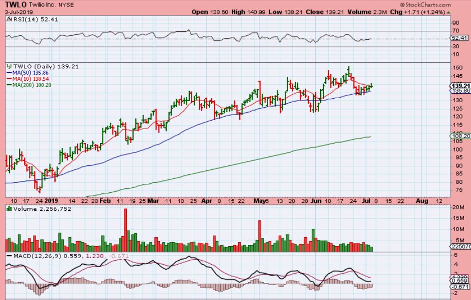 TWLO- Here is a stock that doubled this year since last December. It is an up-trending channel, but look how choppy it was all the way higher. That is NOT an easy ride, but again, 100% in 7 months is great!