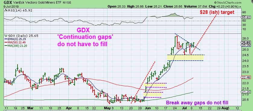 GDX  – I have had a rough target of $28 and that could complete on the next run. This is a 2+ week consolidation, it may be enough.