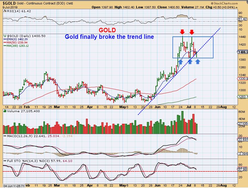 GOLD  – These moves drive the Bulls & The Bears crazy, day after day after day.  Basically it is still in a trading range, but I expect it to eventually break to the upside ( like Bitcoin has).