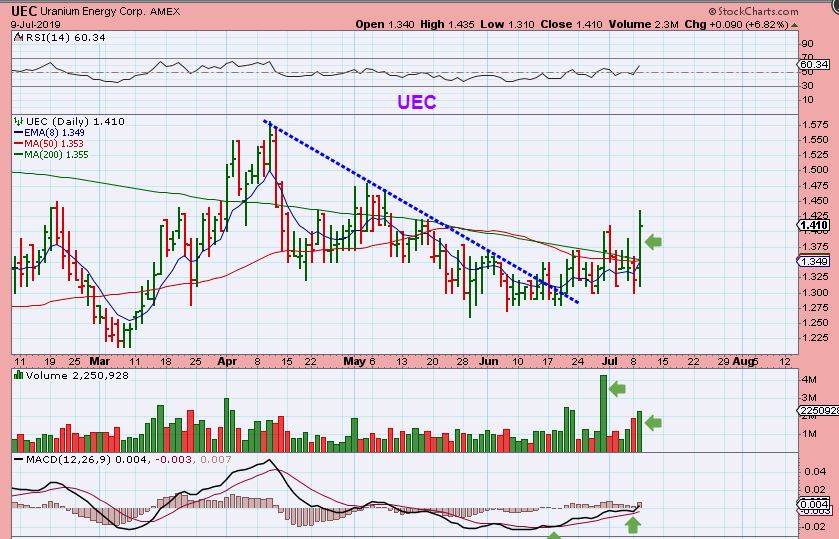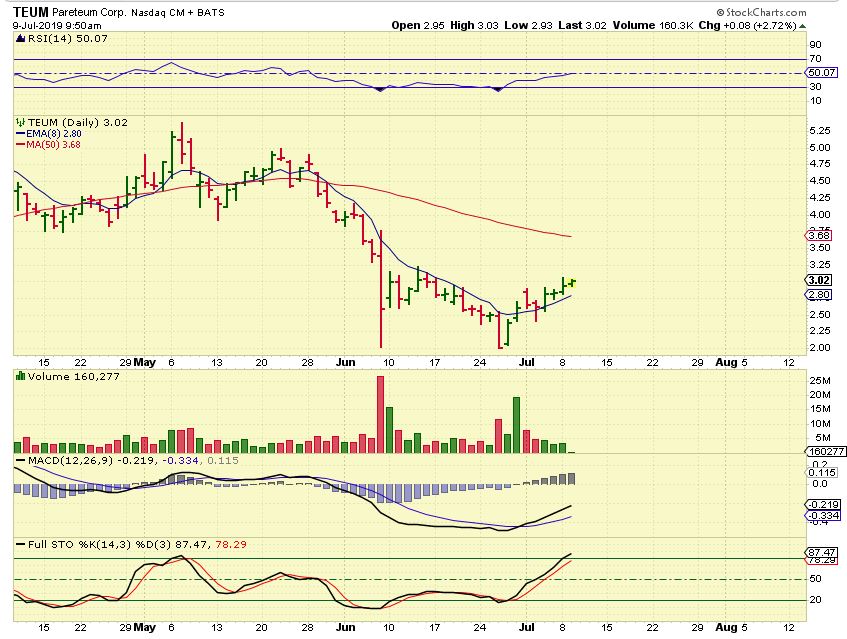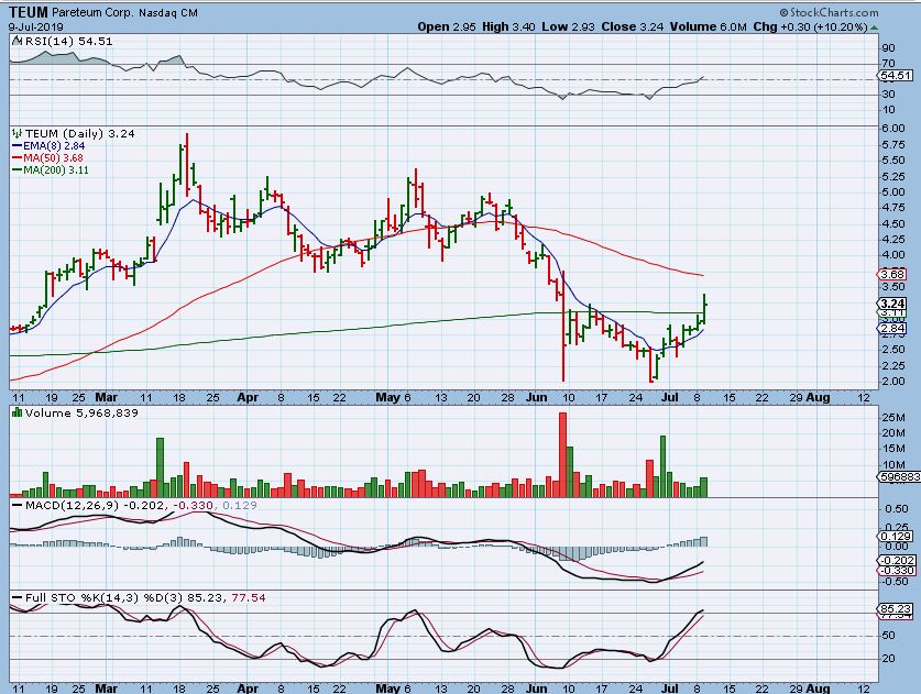 TEUM  – It ended the day by breaking that 200sma & closing up 10+%.  This may just keep running, it can still be bought here with a ‘reasonable’ stop.