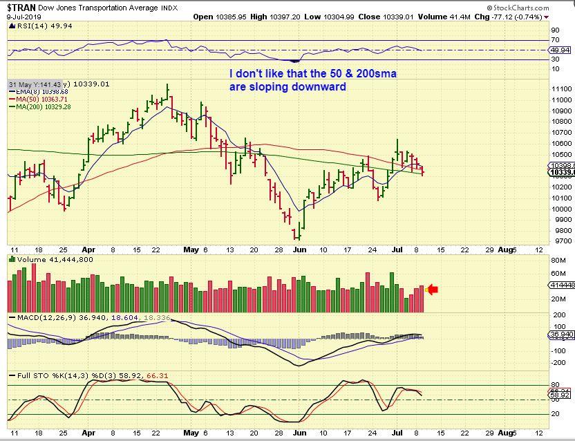 TRAN  – The transports do look a little more worrisome, they look ready to break down actually. Read the chart.