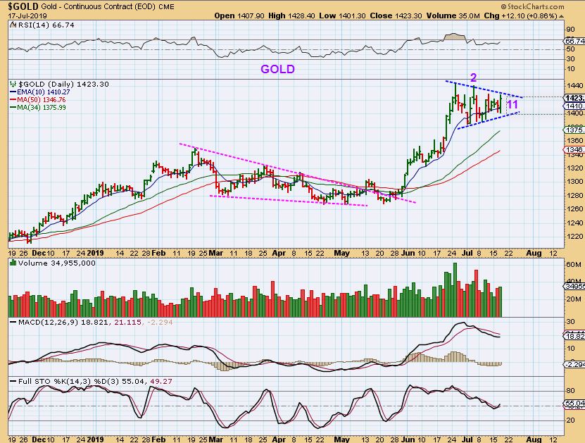 GOLD – On Day 11, Gold pushed higher, right to the top of that Bull Flag. Silver broke out and Gold looks ready to break out soon too.