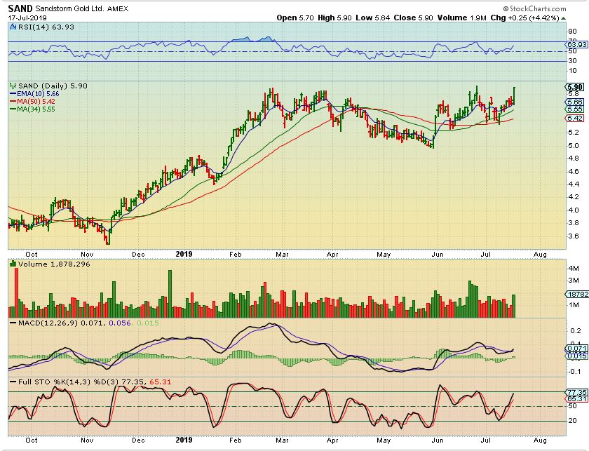 SAND – This is actually a GREAT looking set up. It is a 5 month consolidation that looks like an inverse H&S. Breaking from here should lead to an up trend.
