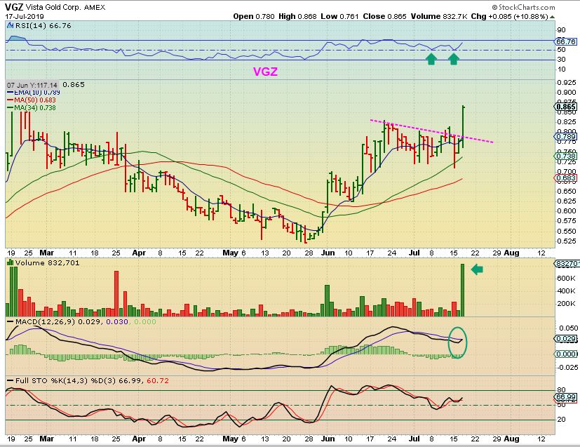VGZ – An earlier chart of VGZ- I (We ) first bought VGZ at 56-58 cents. It ran and has been consolidating…