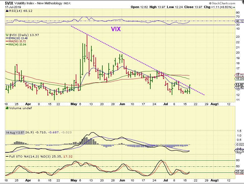 VIX – I mentioned keeping an eye on the VIX. As it pops, the market usually ‘tops’ or ‘drops’.