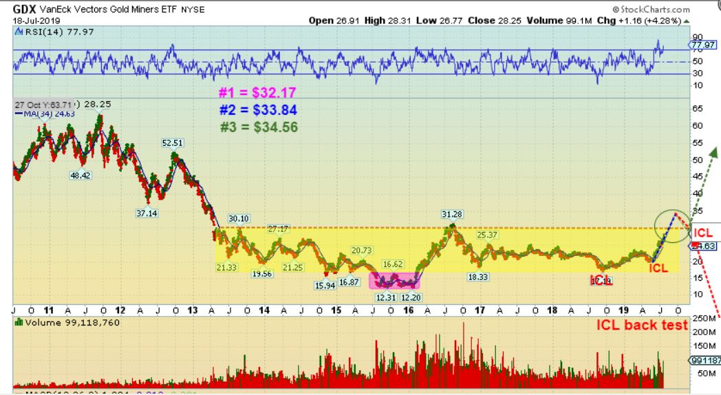 GDX WEEKLY – That would match this expectation of getting back to 2016 highs nicely.