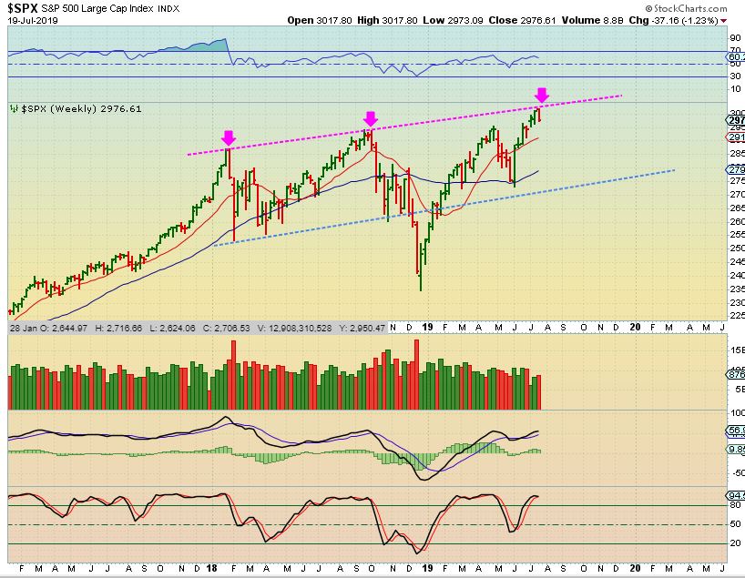 STAY FROSTY – Even with this bounce, that broadening top megaphone pattern can still play out, and the weekly chart has reached overbought levels. Is the FED just delaying the drop?