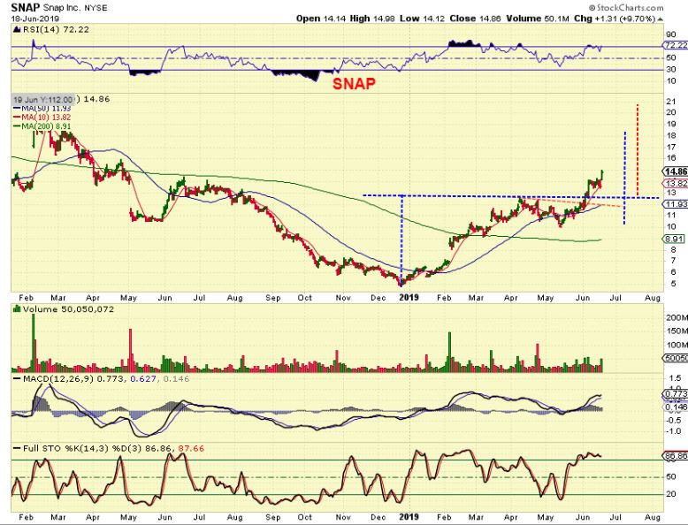 SNAP – last month I mentioned that SNAP should get to the $21 area, with a measured move…