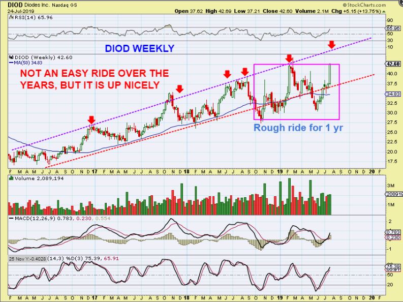 DIOD WEEKLY – This looks like maybe $46 is a topping area. Though it is in an uptrend, this is NOT a good buy & hold, unless you can handle this kind of action.