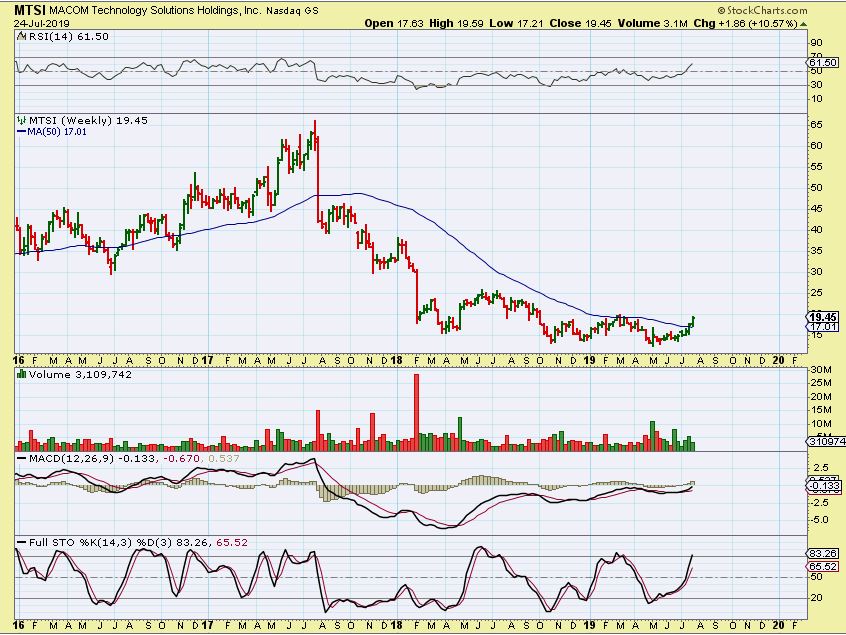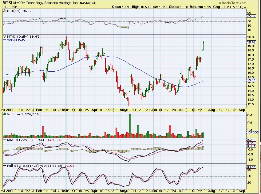 MTSI – This one looks extended and may have just formed a cup. If it forms a handle at $20 & remains bullish, you can buy it. Why do I like this for the watch list?…