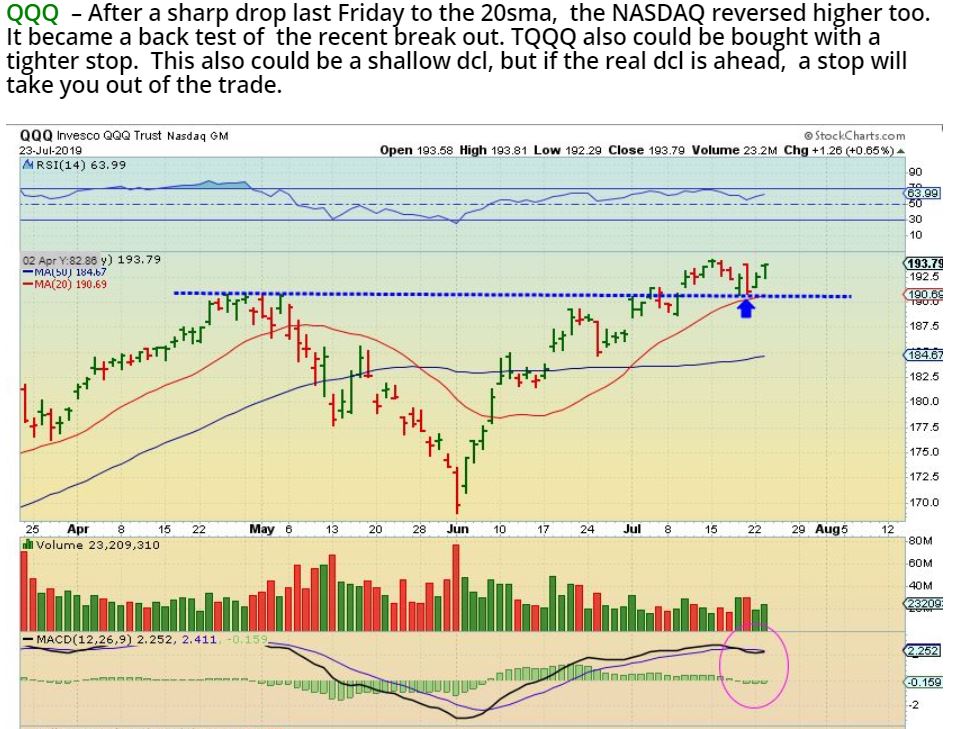 QQQ from yesterday – I also said that you could Buy with a stop. It has moved a little higher since then too…