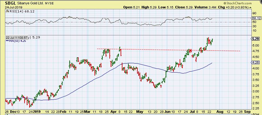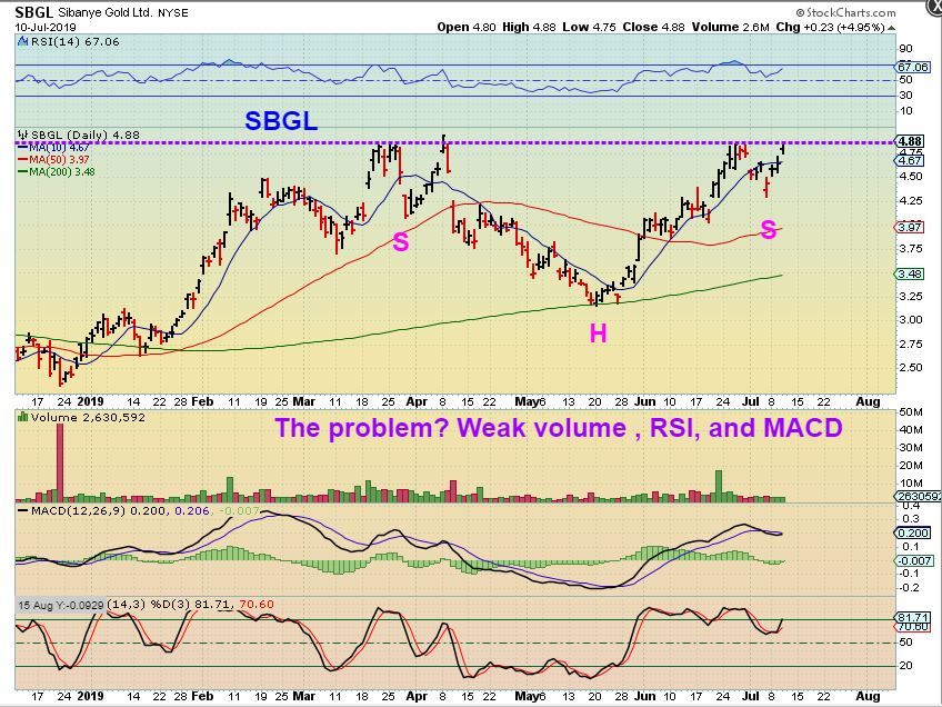 SBGL – VERY SLOWLY it is still making gains, but if Gold breaks higher, I think this could pick up speed.