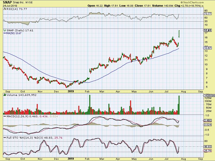 SNAP – Snap got choppy and that is always tough to hold on to, but then it popped up 19% on Wednesday after releasing earnings. It is still on its way to the $21 area.