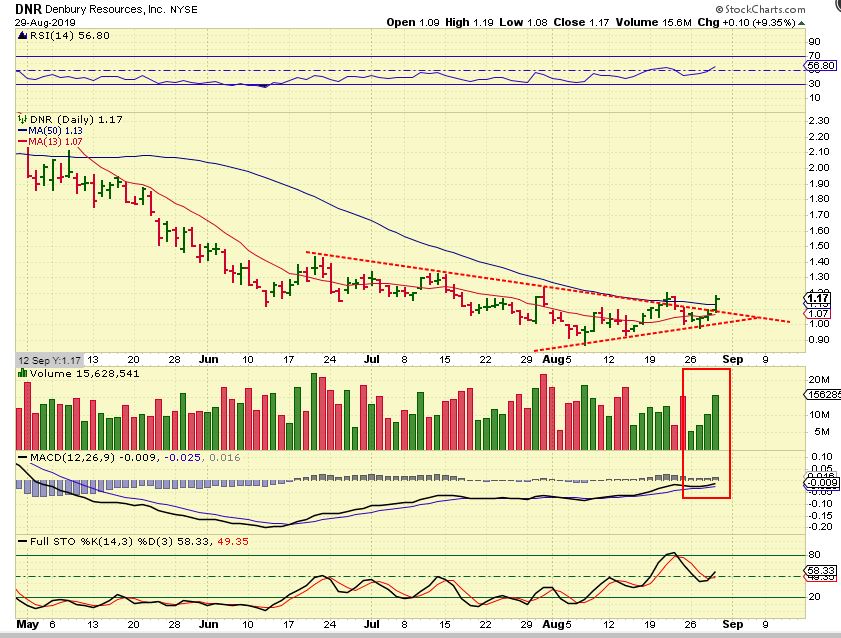 DNR – I pointed out DNR as possibly forming a base in yesterdays report. DNR is breaking higher, up through the 50 sma and closing up 9%. See also LPI, PDS, PEIX, AXAS, OAS, etc etc