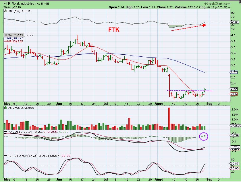 FTK – FTK is another Shipper that Broke higher. When a small flat base forms and the highs are taken out with that divergence, it can be bought.