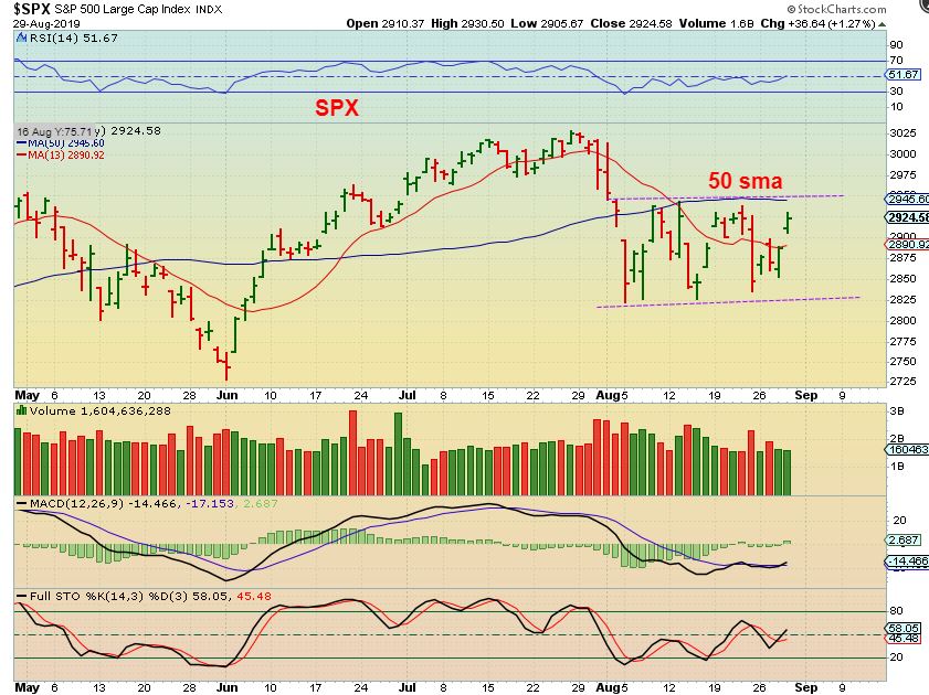 DJIA – I thought that the DJIA had a slightly bullish look to it, so this may be hinting at a break higher. Look at the Histogram & MACD. SOme have been ‘shorting’ the 50sma, and flipping at the lows. I would watch that 50 sma closely, this almost looks like it wants to break out higher.