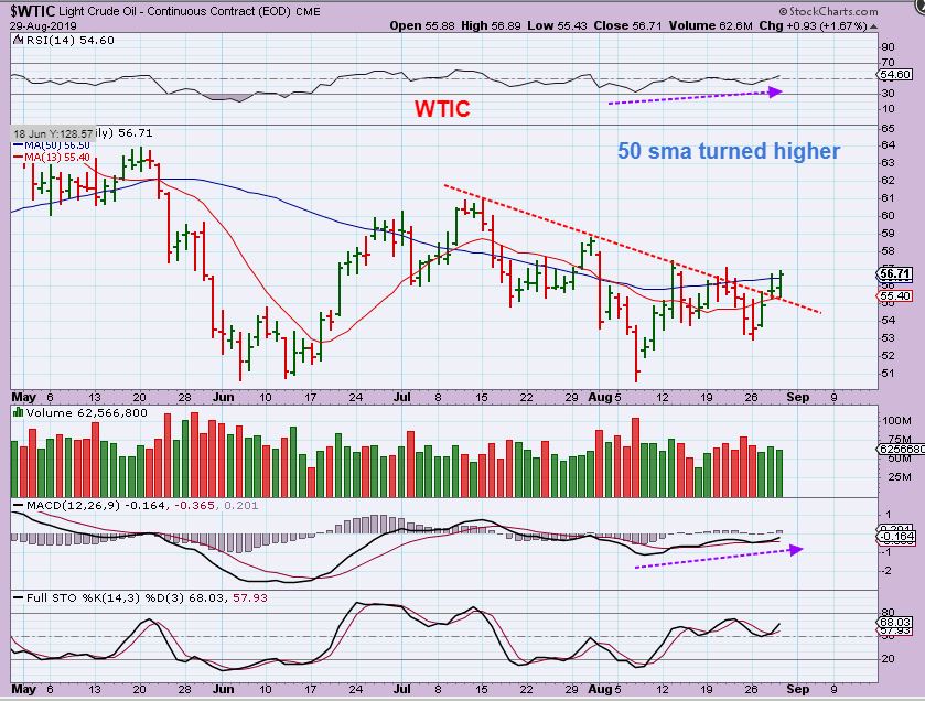 WTIC – OIl has found the follow through & closed just above the 50 sma. Yesterday I mentioned this: