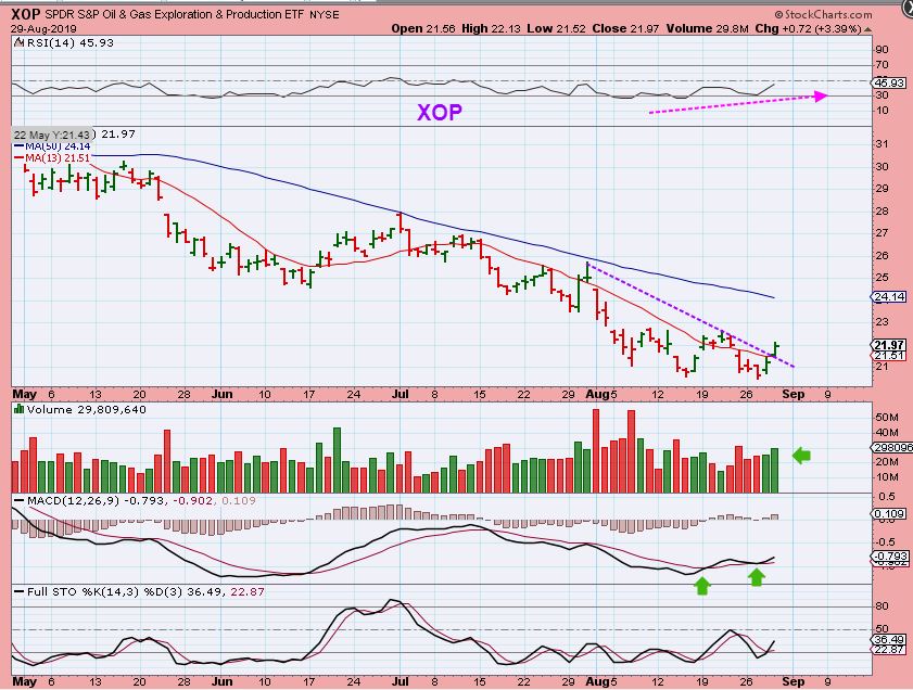 XOP – I mentioned yesterday that I bought GUSH at $3 with a reasonable stop, XOP represents GUSH. This looks bullish at this point.