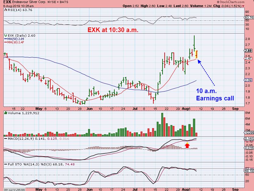 CDE – CDE released earnings and dropped to the 10sma & then reversed higher. THAT IS BULLISH, so I posted this in the live chat 1/2 hr into trading and mentioned that I think this goes higher.