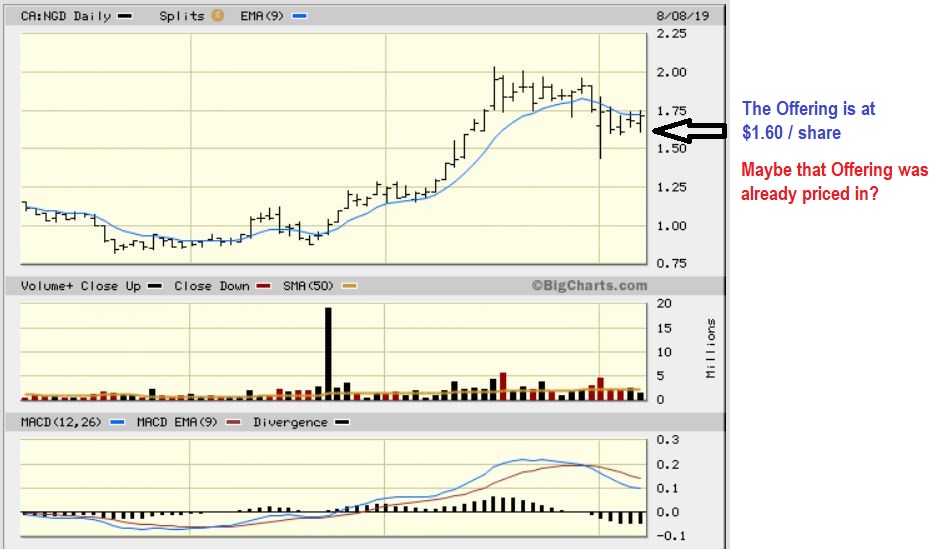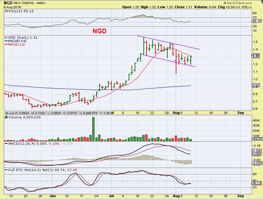 NGD TSX – The offering was for $1.60 Canadian, and that is actually where it traded Thursday. So this might not drop very much from an ‘offering’, and you can watch the 8 ema or 10sma for a price break. That may signal that NGD is ready to run. THEY ALREADY REPORTED EARNINGS ON AUG 1