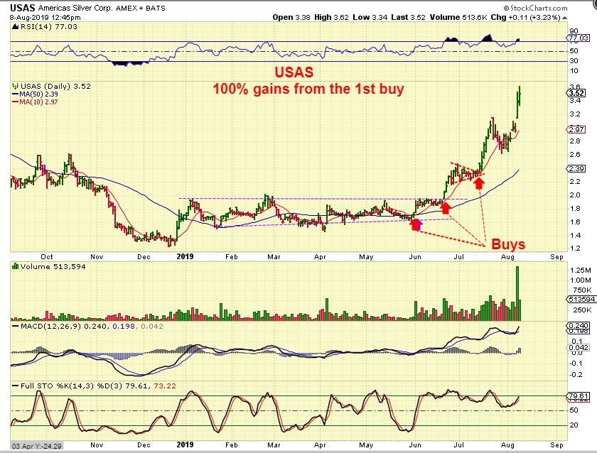 USAS – I just wanted to point out USAS. I have 18 charts of USAS from the lows, showing this one as a ‘base buy’.