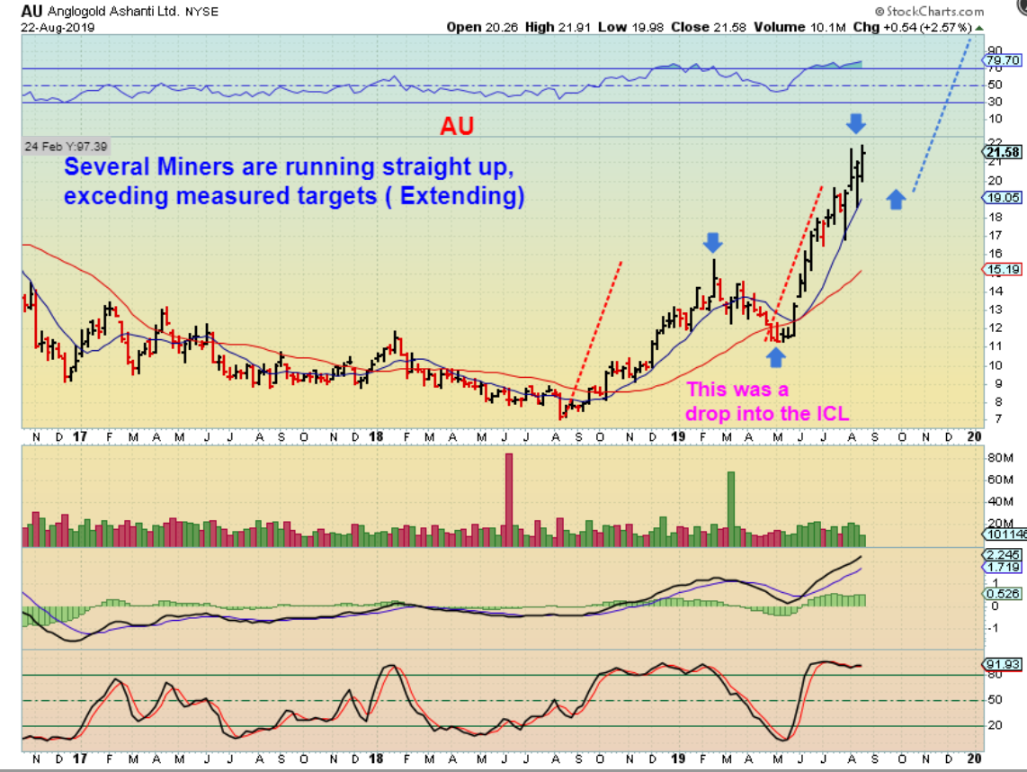 Looking at AU, we see that this has been a VERY BULLISH move and the pullback will be a great buying opportunity too. You are looking at the last 2 ICLs of August 2018 & May 2019 here. $7-$16, and $11 to $22.