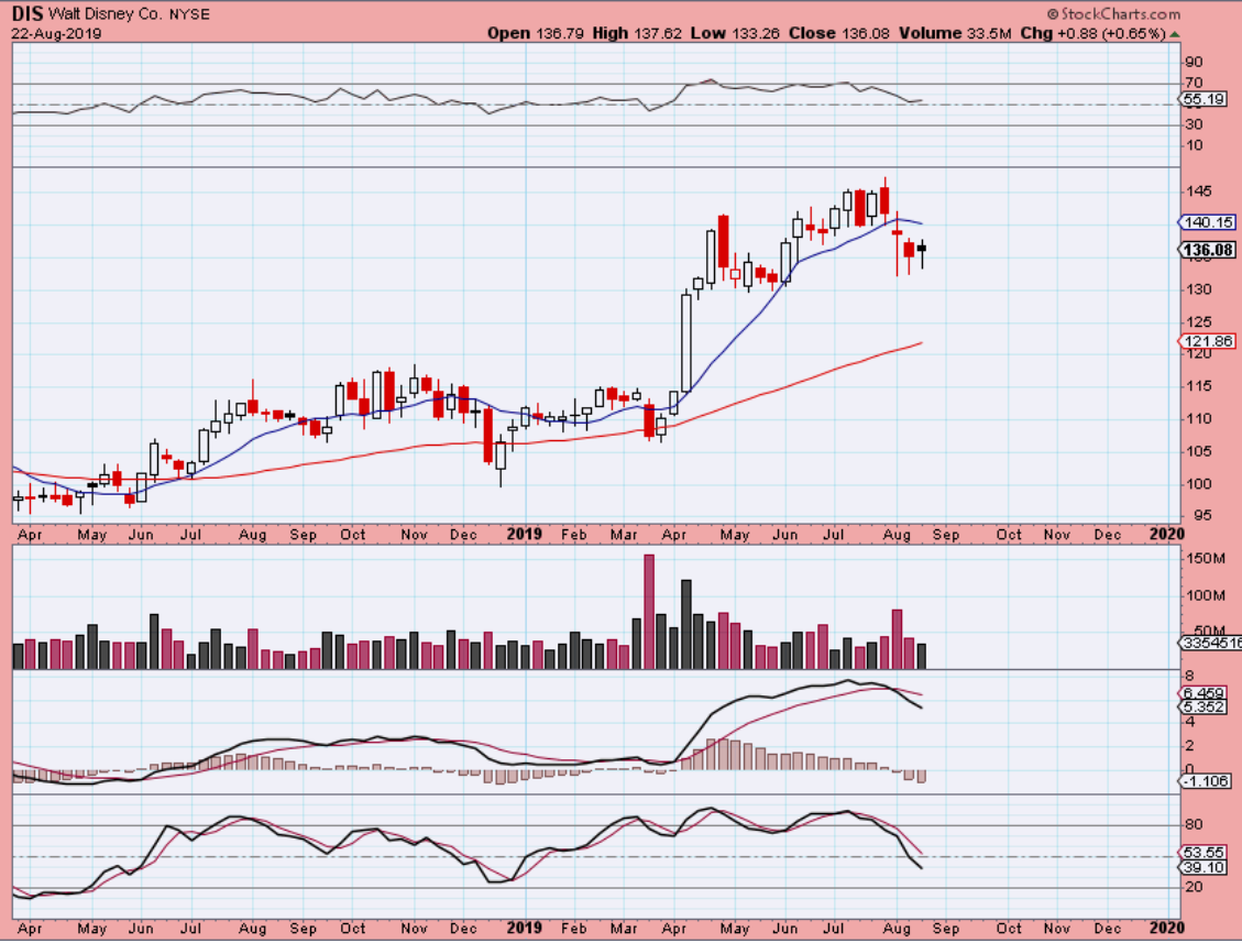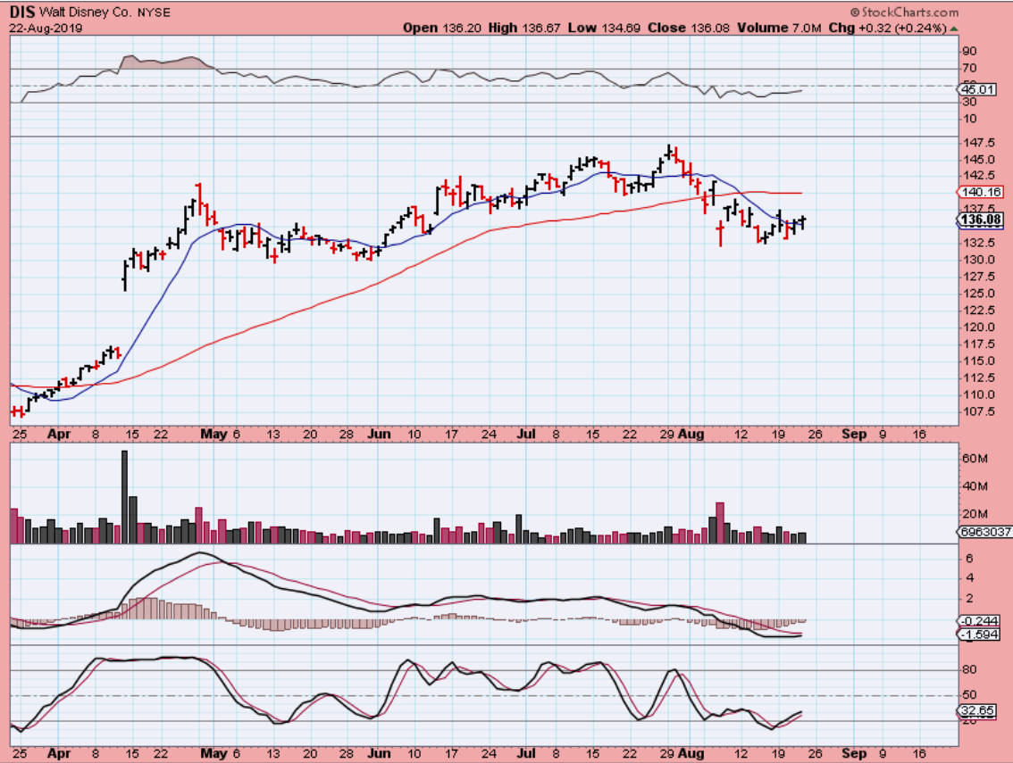 DIS – Disney had good earnings, but it has gone no where and remains choppy trapped under the 50 sma. That could be a bear flag. I like that it gained the 10sma yesterday, but I would put a stop under August lows, because…