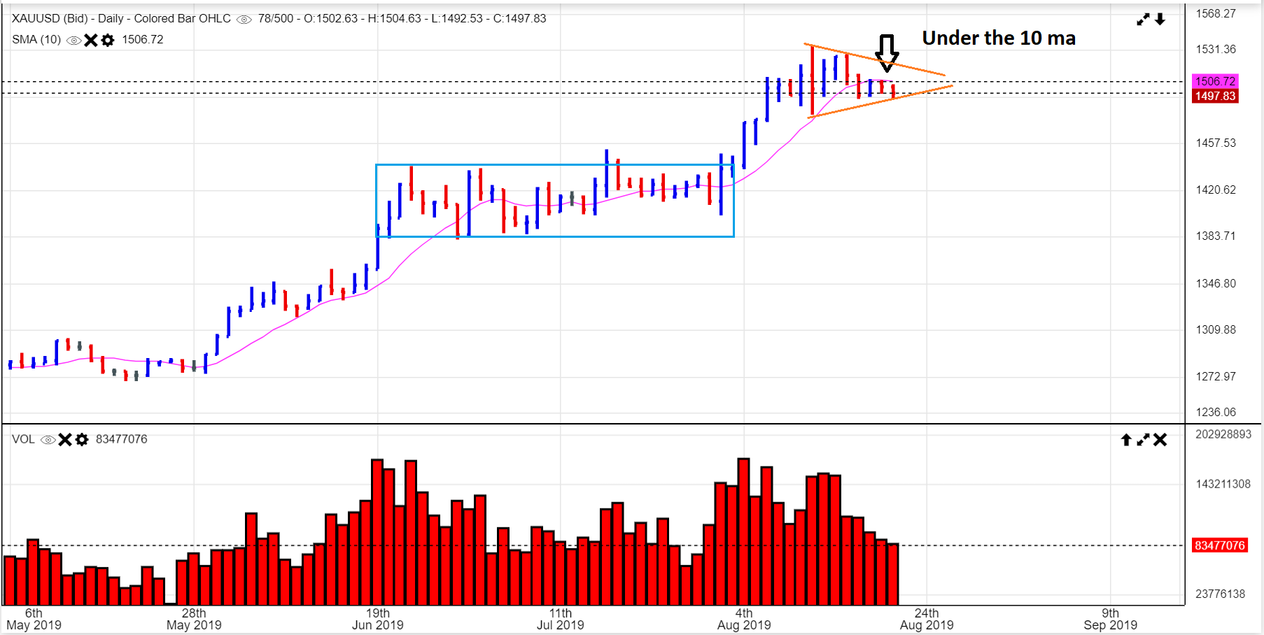GDX #1– I drew a break out like this on GDX, but with GDX stuck under the 10sma ( Not good), I have thought about redrawing that…