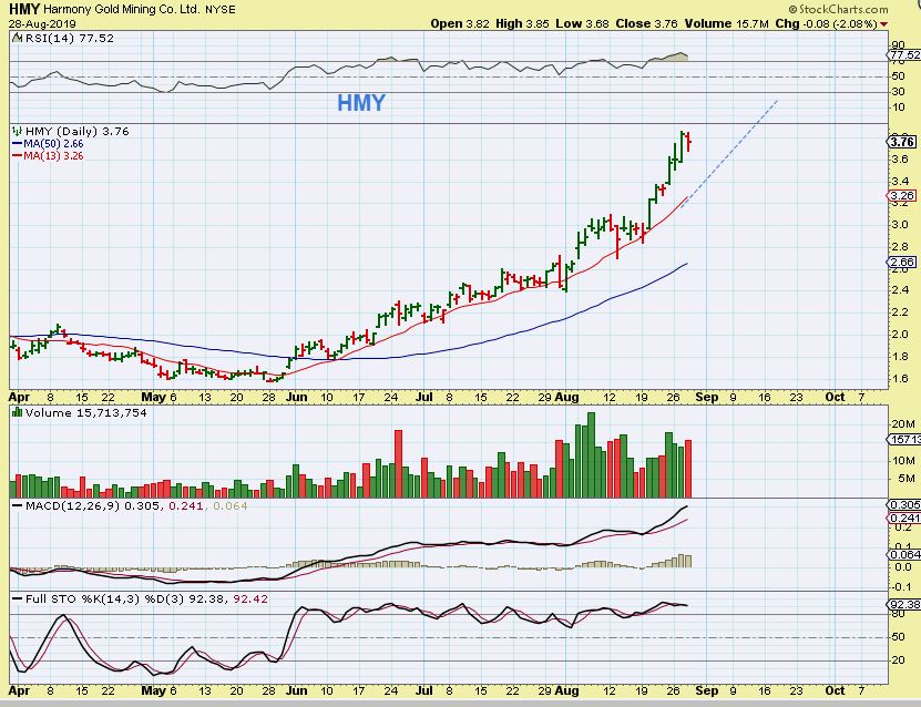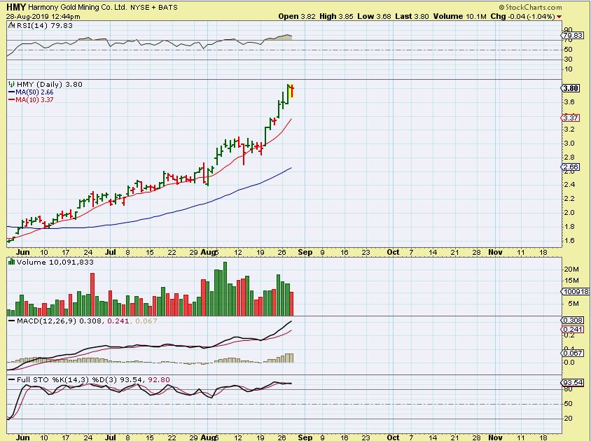 HMY #1 – This is a steep run, and it could be due for a pull back. Can it keep running higher too?…