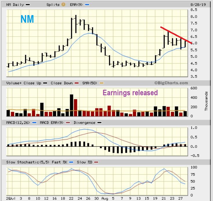 NM– I had grabbed this chart just above $6 when I bought it, and they have already released earnings.