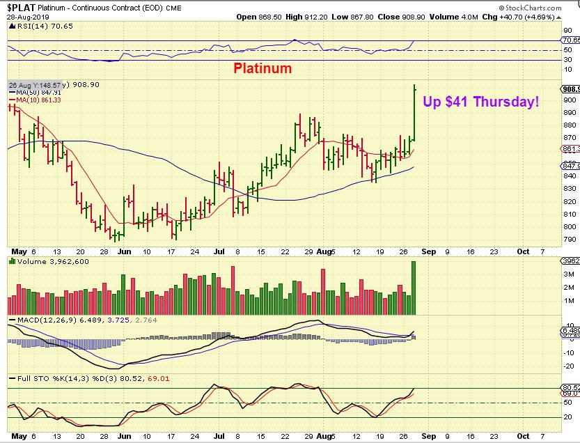 HELLO PLATINUM! – Out of nowhere Platinum Popped over $40! PLG & SBGL are Platinum Miners. I will discuss them below at the end of the report.