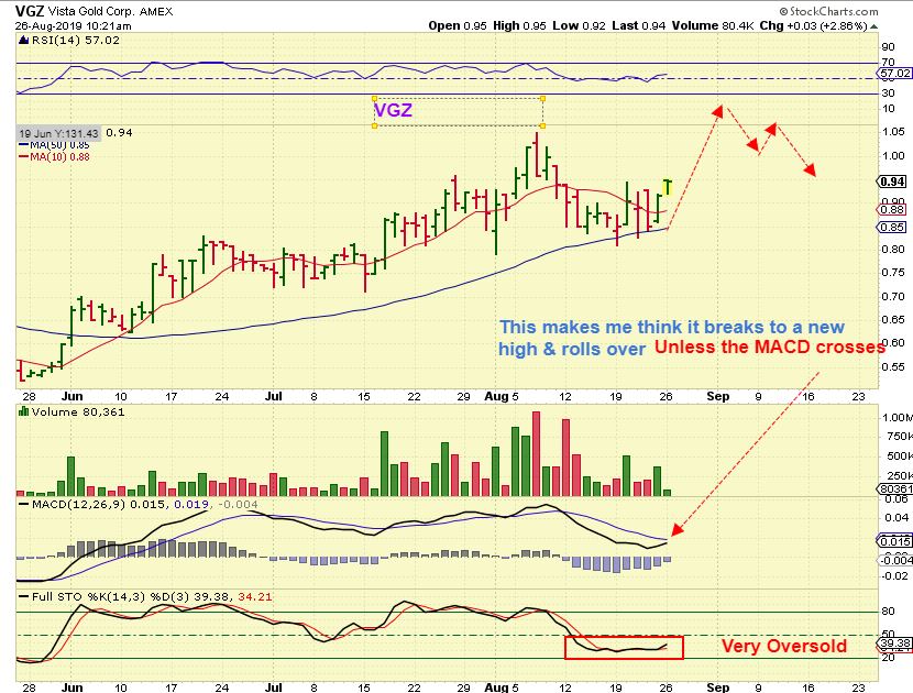 VGZ- On last week and again on Monday I discussed buying lagging Miners that have bullish set ups and pointed out AUY, SBGL, VGZ, etc
