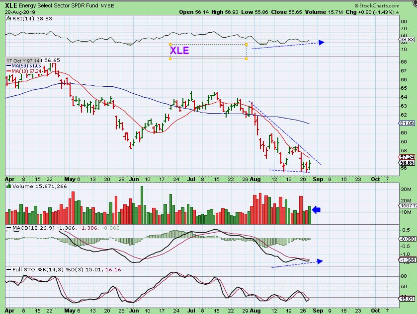 XLE- The XLE shows divergence at new lows too.