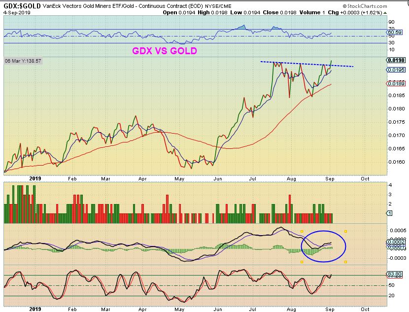GDX VS GOLD RATIO:  When we see MINERS leading the way, it is more Bullish. With Wednesdays move of GDX to new highs,  it looks like Miners are leading again.