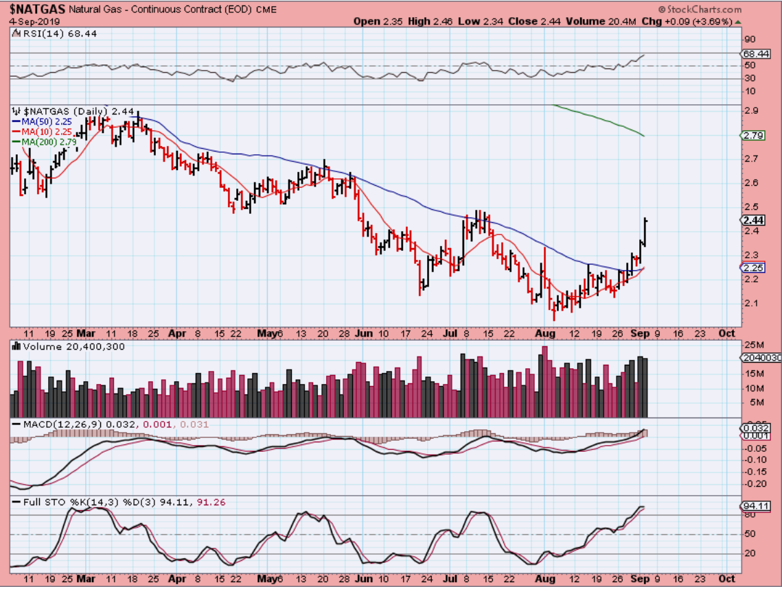 NATGAS – On AUG 26, This was my chart of NATGAS pushing against the 50sma. A break out would also be a buy here…