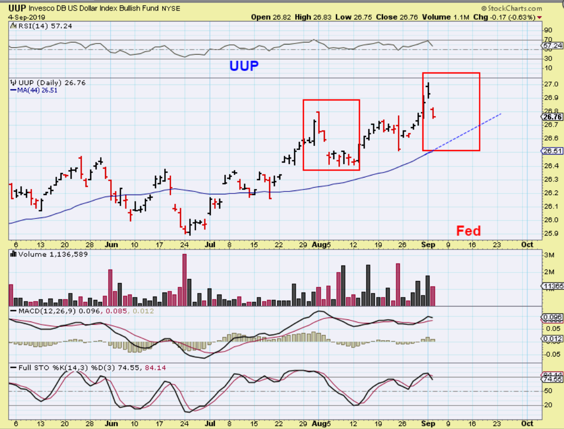 UUP ( for the USD) – The USD had that topping reversal candle Tuesday and dropped Wednesday…