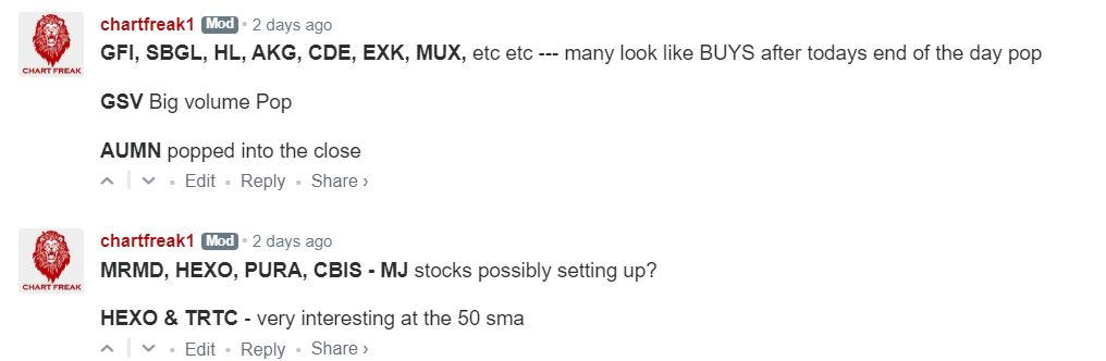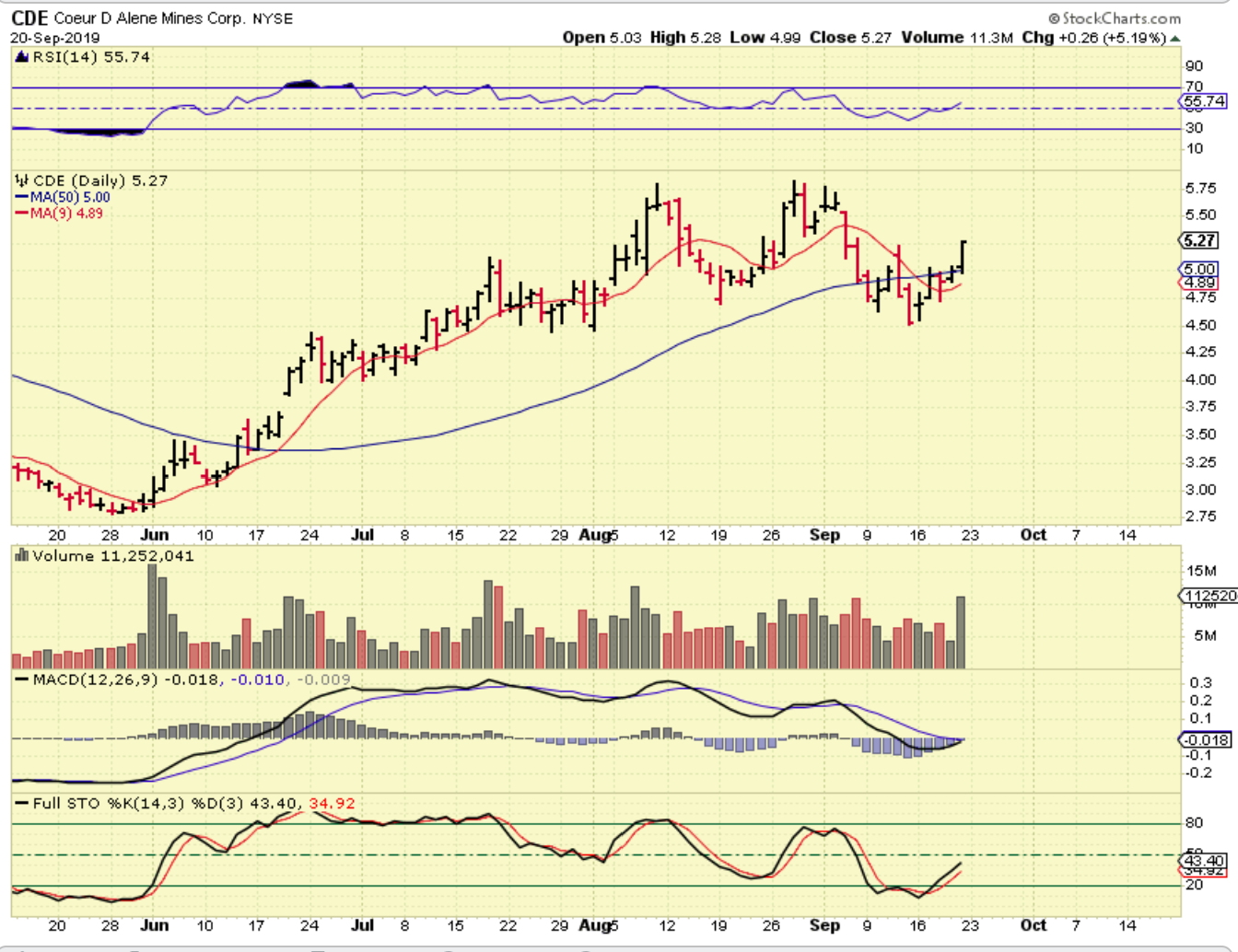 HMY & CDE – I also have discussed over the past week or two that I owned DRD, HMY, CDE, etc recently, and I posted this Friday in that live trading area as a Buy and will discuss things further at the end of the report.