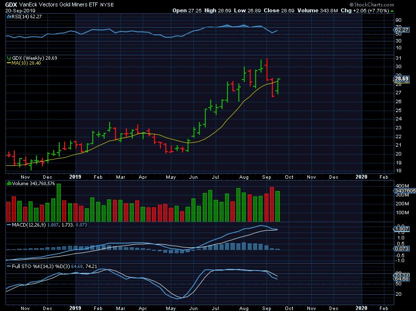 GDX WEEKLY – The weekly chart flipped to the point that it closed back over the 10 week ma.