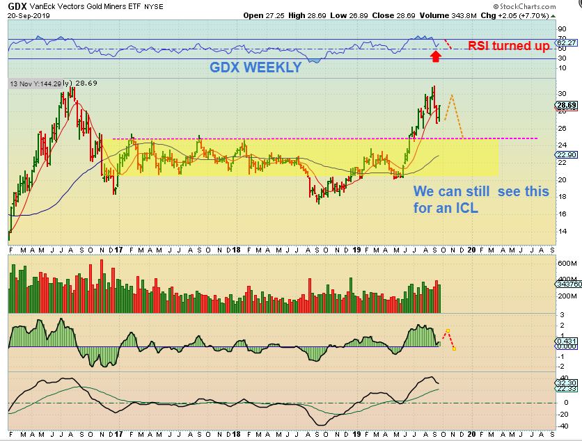 GDX WEEKLY – We may end up with something like this after this daily cycle unfolds. THIS IS VERY POSSIBLE WITH AN ICL AHEAD.